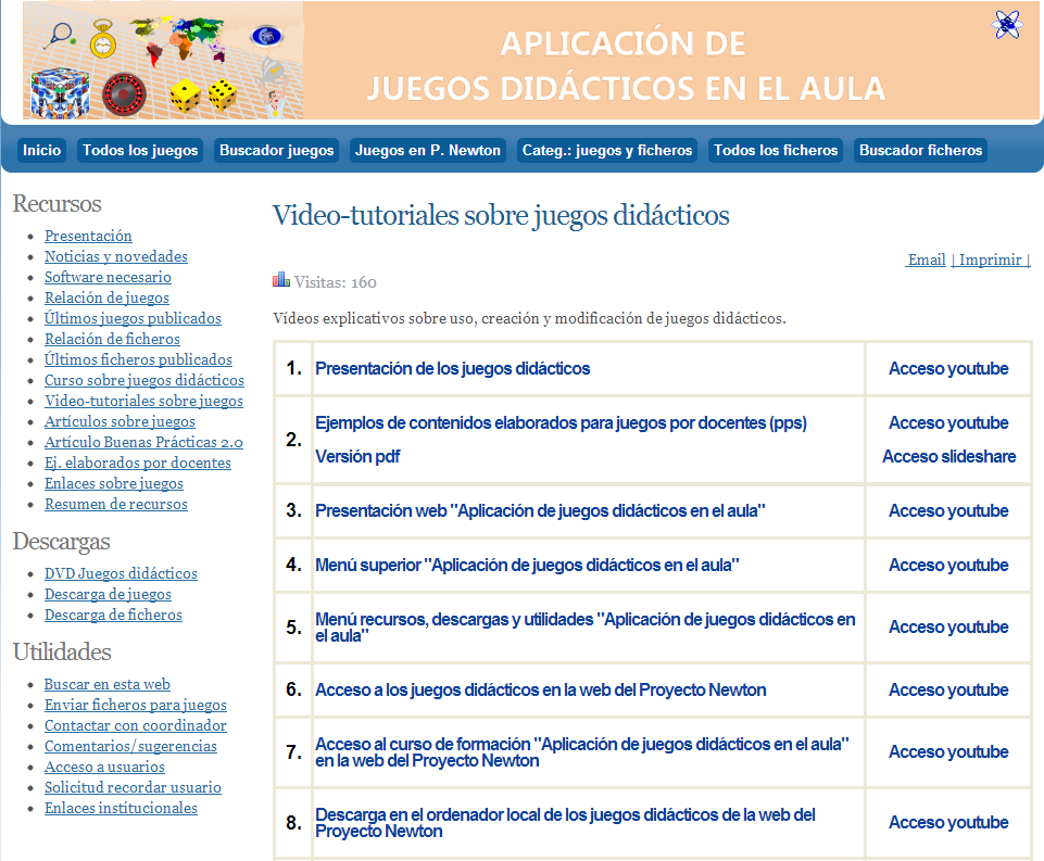 - La web "Aplicación de juegos didácticos en el aula", a través de su apartado "Video-tutoriales sobre juegos" de su menú Recursos, nos ofrece una relación vídeos específicos sobre el uso, creación y modificación de esros juegos didácticos que pueden servirnos de ayuda a la hora de planificar y preparar actividades basadas en juegos didácticos. A estos vídeos tambien se puede acceder a través de Youtube.